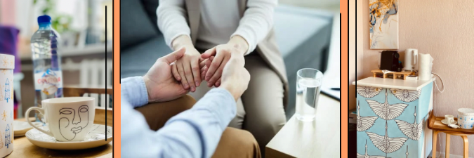 После глубокой сессии всегда можно перевести дух и плавно вернуться к дневному ритму за чашечкой ароматного чая, кофе или стаканом воды. Отсутствие отвлекающих факторов, сохранение терапевтического формата общения предотвращает смешения ролей Терапевта и Друга, Терапевта и Мамы.